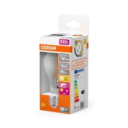 Beschrijving Osram Classic LED E27 Peer Filament Helder 7.3W 806lm - 827 Zeer Warm Wit | Bewegings- En Lichtsensor - Vervangt 60W