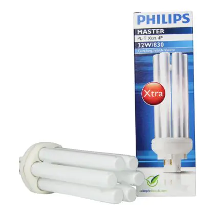 De Philips PL-T Xtra 4P lampen onderscheiden zich door een extreem lange levensduur, tevens zijn ze zeer energiezuinig. De PL-T Xtra 4P serie kunt u gebruiken op een elektronisch voorschakelapparaat. De Philips PL-T Xtra 32W 830 4P (MASTER) lamp heeft een lengte van 14 cm en heeft een GX24q-3 lampvoet, wat overeenkomt met 4 pinnen. Daarbij heeft de lichtbron energielabel B. De levensduur is 33000 branduren. Als de lamp begint te knipperen en moeizaam opstart, is deze aan vervanging toe.